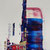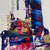 Tiefe Blautöne und leuchtendes Rot verdichten sich zu einem kraftvollen Rhythmus, wie die funkelnden Lichter am Eiffelturm, die in der Nacht erwachen.